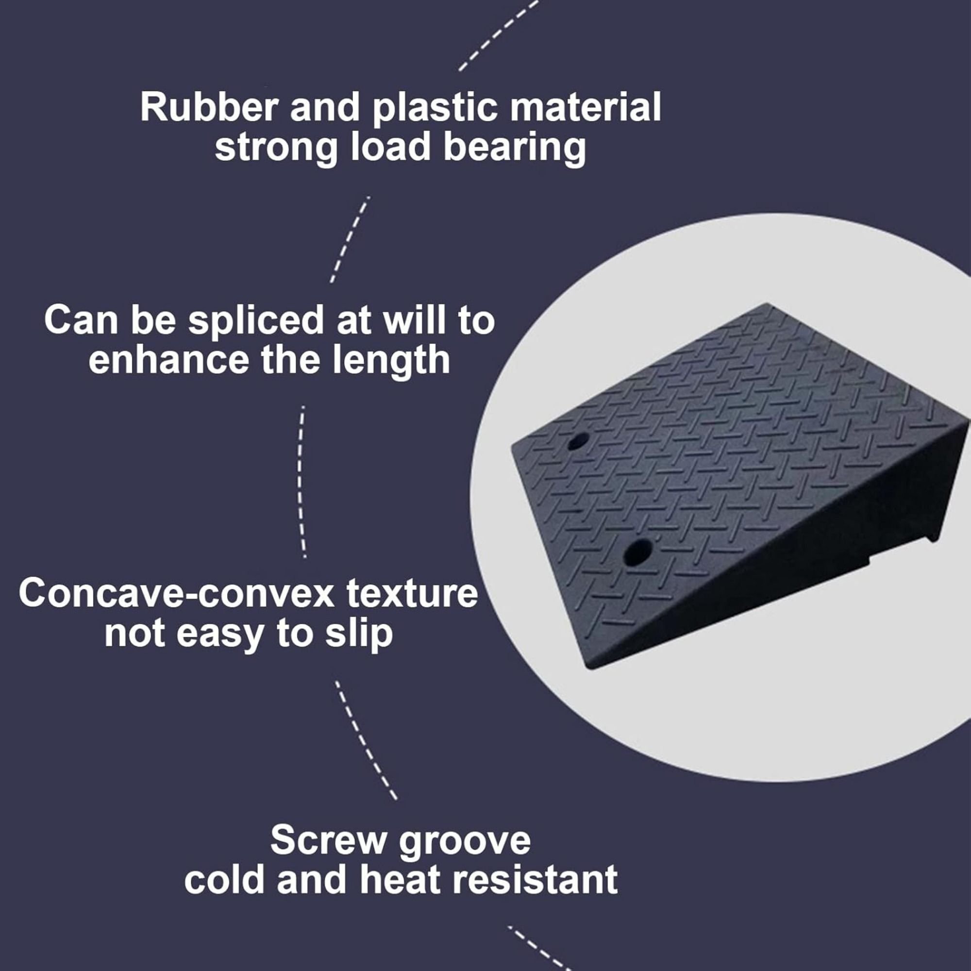 Anti-slip Surface: The rubber curb ramp features a textured pattern on the surface that increases friction and reduces the risk of slips and falls, even in wet weather. The unique design makes it ideal for use with wheelchairs, scooters and other vehicles.
