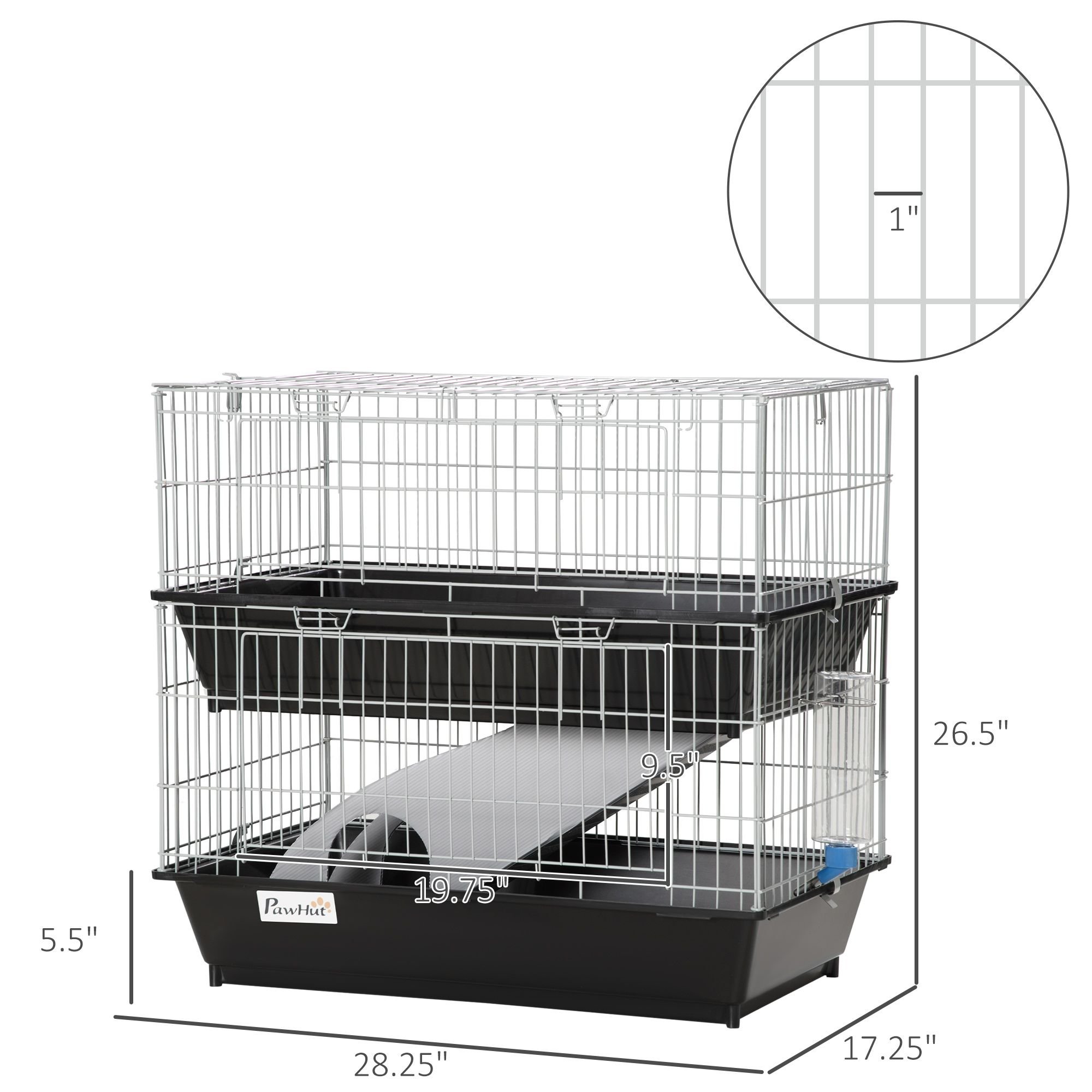 2-Tier Mouse Cage, Ferret Cage W/ Dish and Bottle, Ramp, 2 Doors