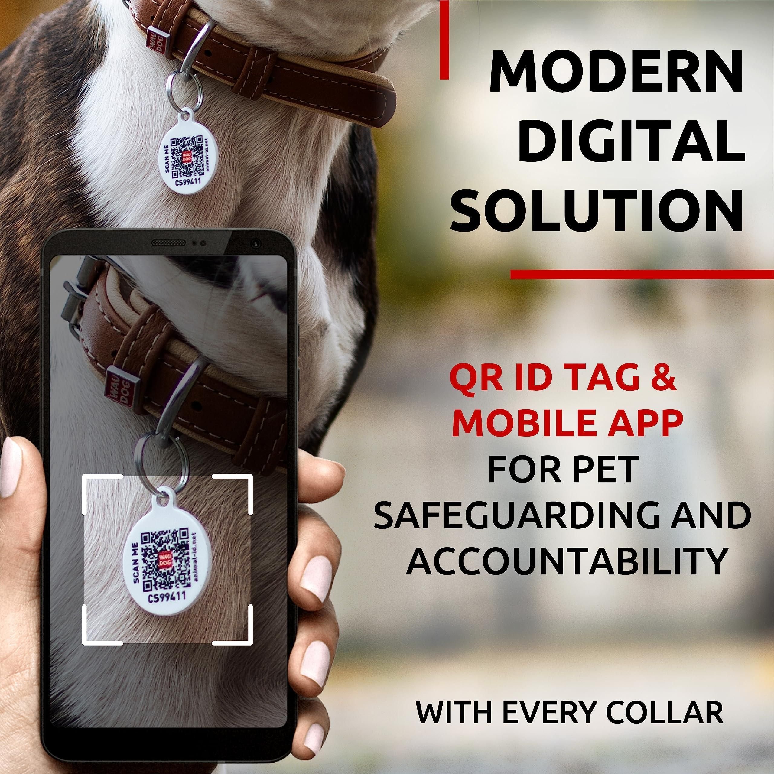 4.smart qr tag a modern digital solution designed to enhance your dogs safety. the collar tag contains a qr code which connects to a multifunctional mobile app.