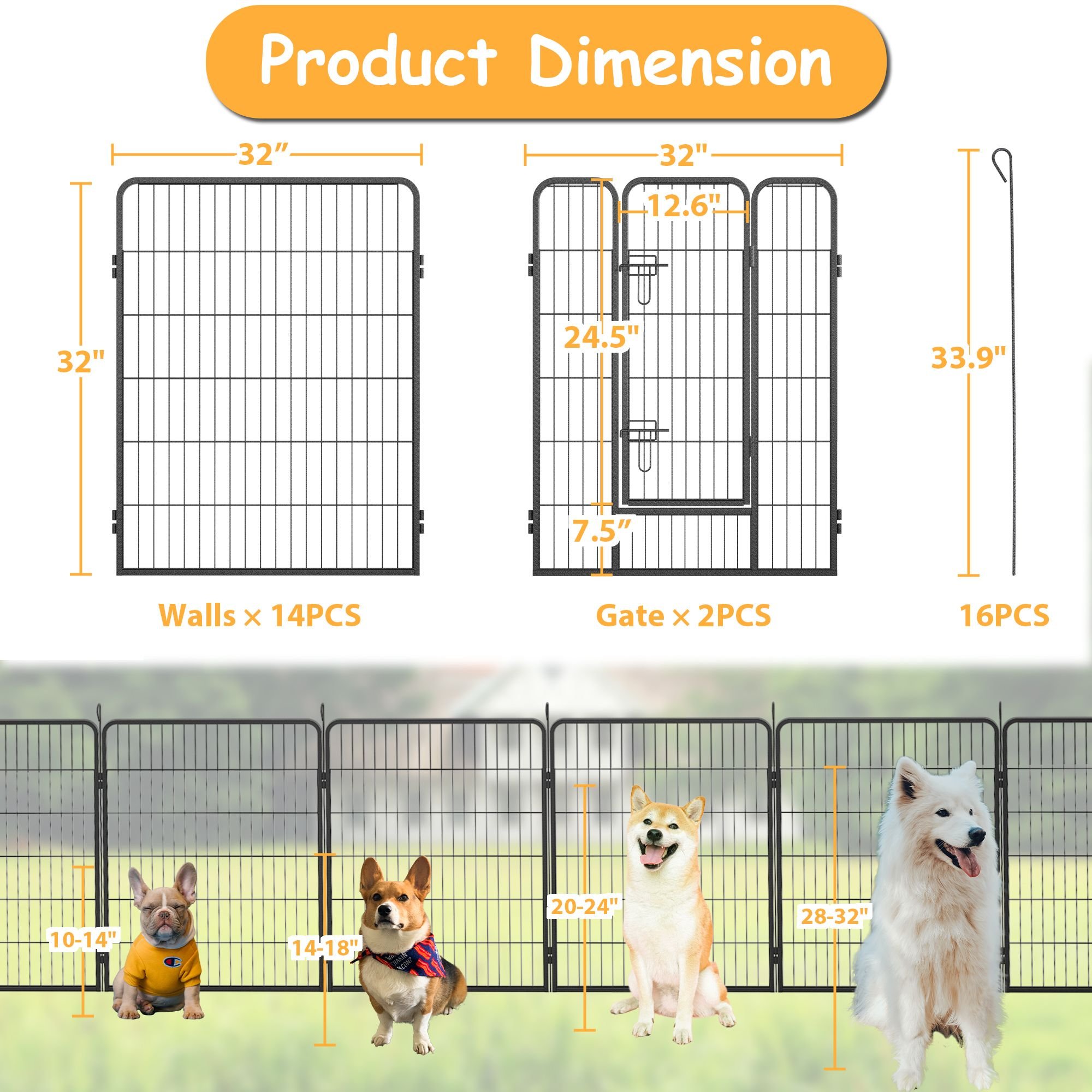 Dog Pens Outdoor 32" Height Foldable 16 Panels Heavy Duty Metal Portable Dog Playpen Indoor Anti-Rust Exercise Dog Fence with Doors for Large/Medium/S