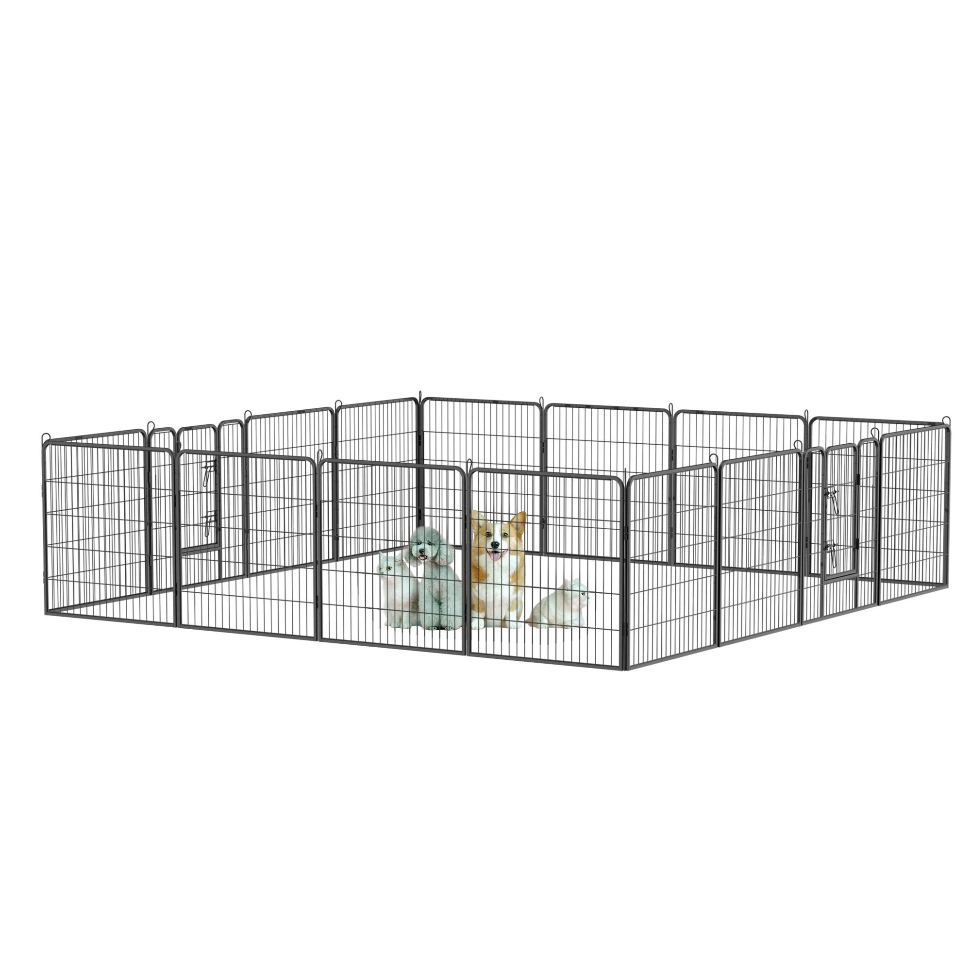 Home > Dog Pens Outdoor 32" Height Foldable 16 Panels Heavy Duty Metal Portable Dog Playpen Indoor Anti-Rust Exercise Dog Fence with Doors for Large/Medium/S