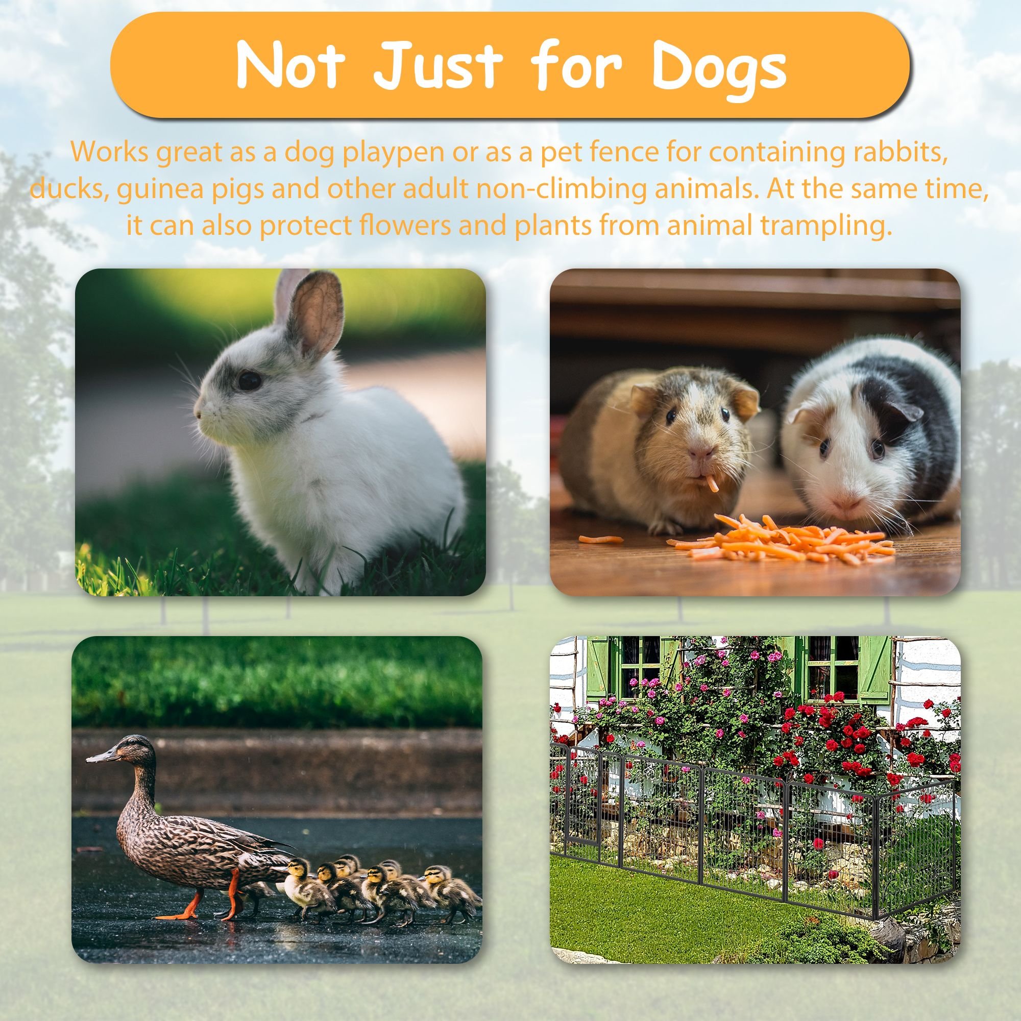 Safe & Secure: Designed with round edges and smooth steel wires, dog run playpen perfectly protect your pets from hurting; The upgraded flat rods can be easily inserted into the ground for greater stability and rigidity.