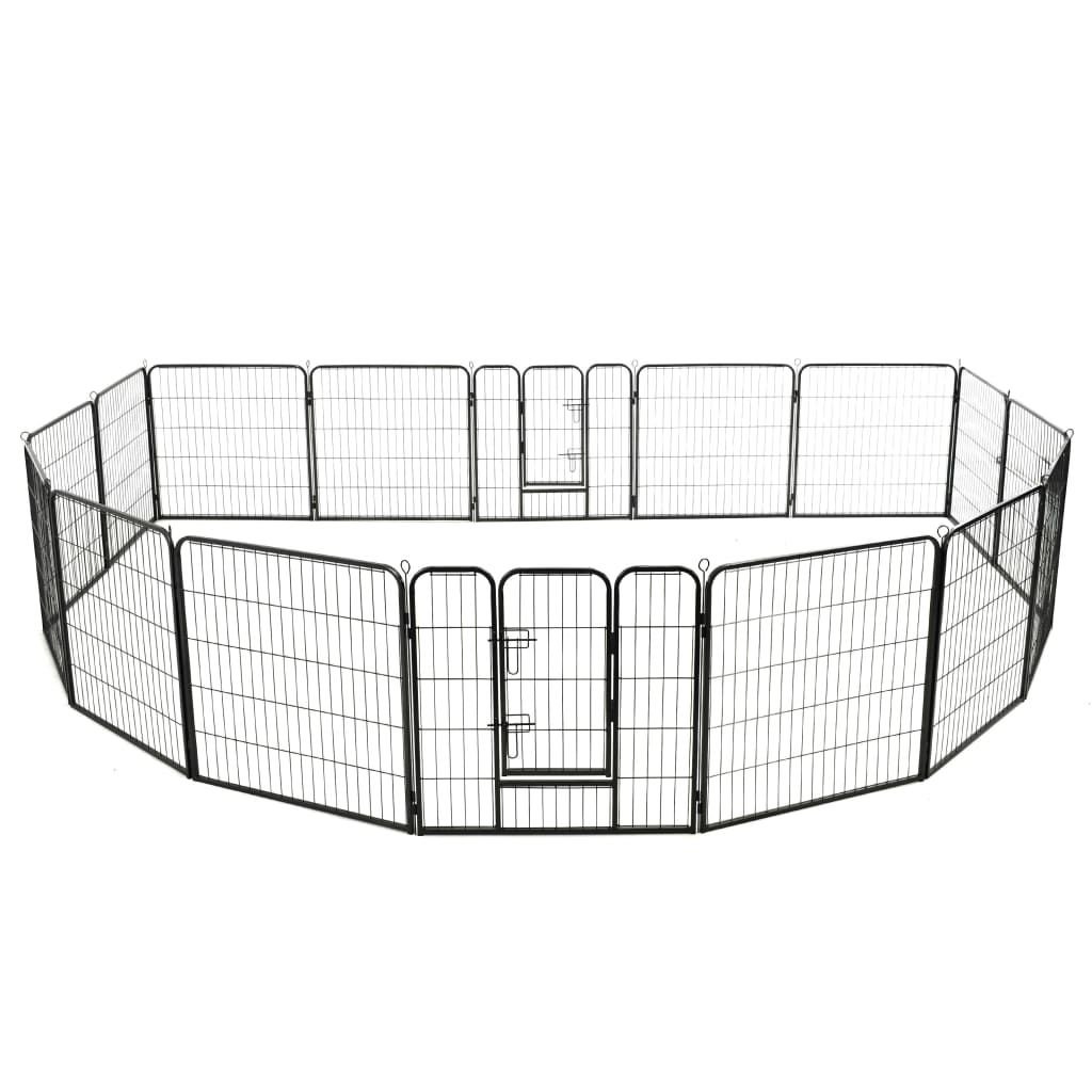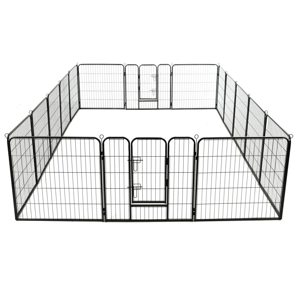 Dog Playpen 16 Panels Steel 31.5"x31.5" Black