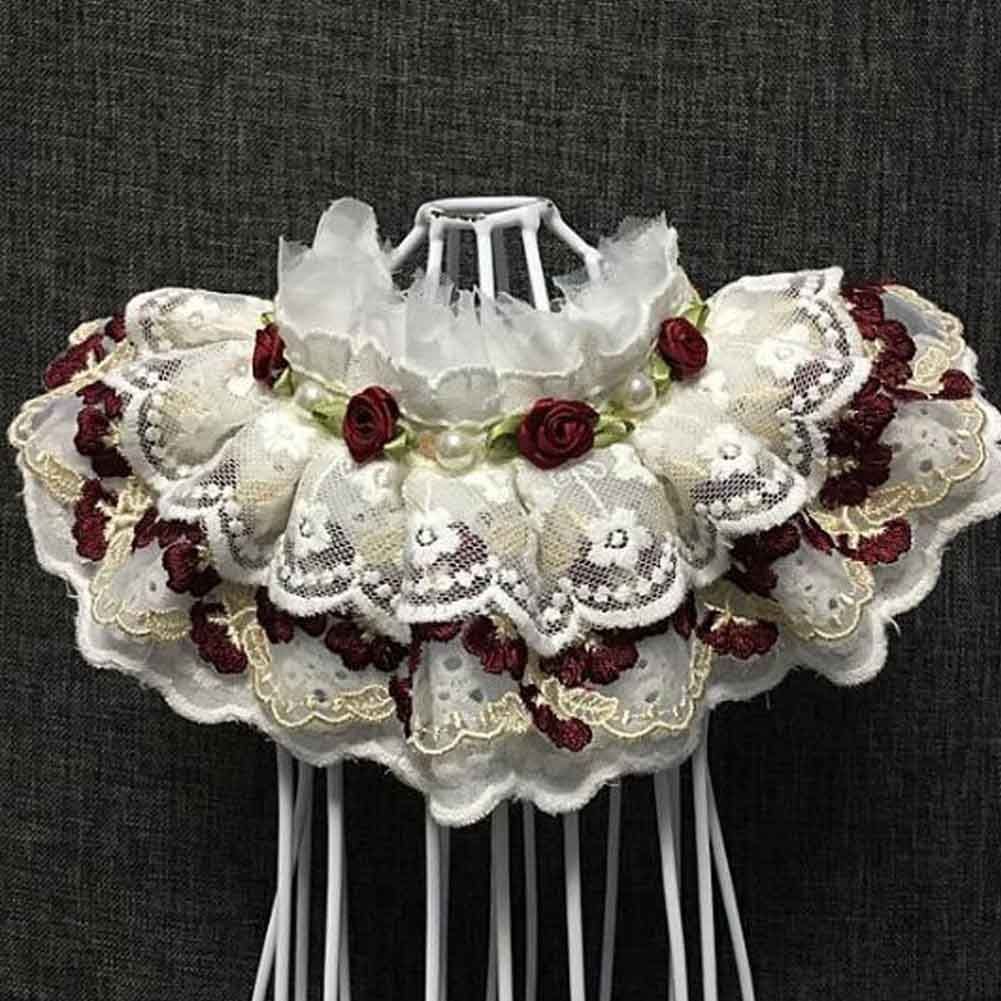 Home > Handmade Retro Lace Collars Dog Necklace Cat Neckerchief Wine Red Rose 8.2-11.2"