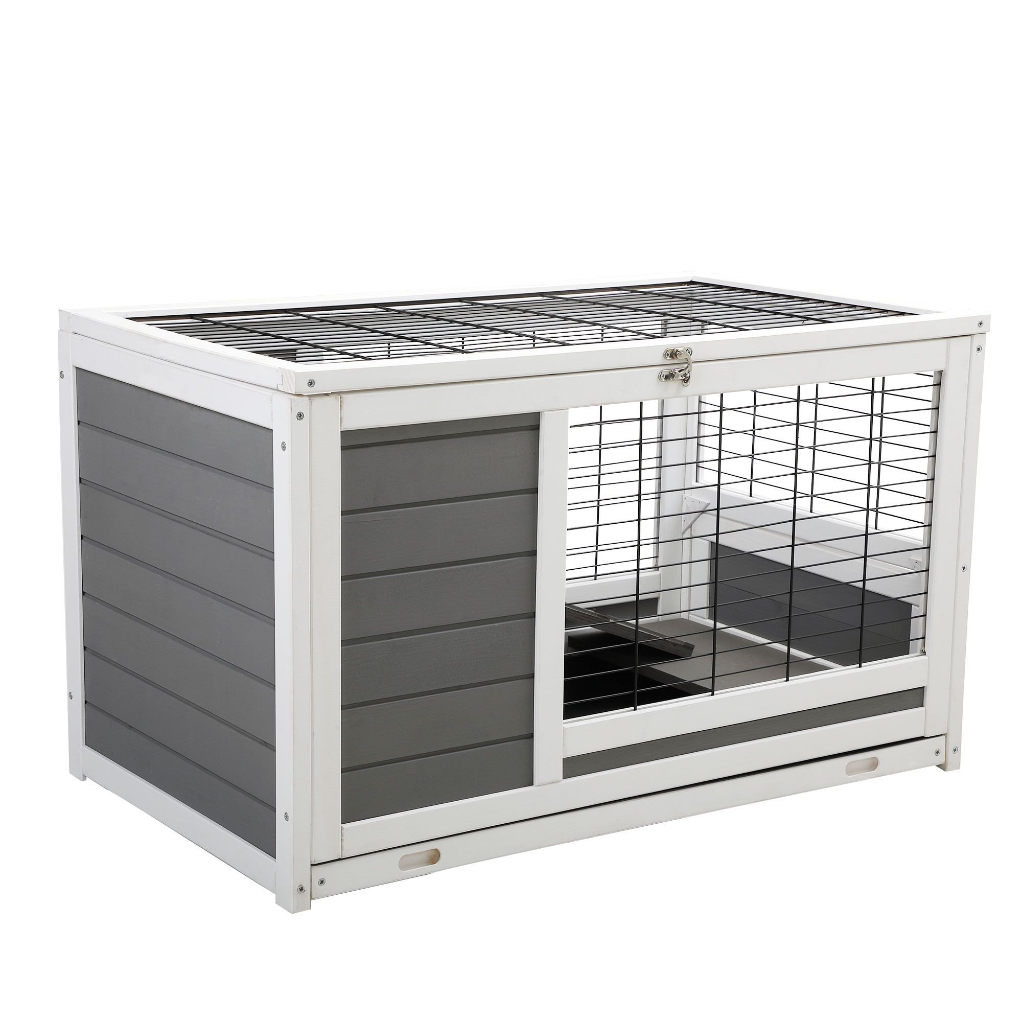 Luxury 2-Storey Pet House Box Wooden Cage Comfy Cabin for Small Animals, Grey White
