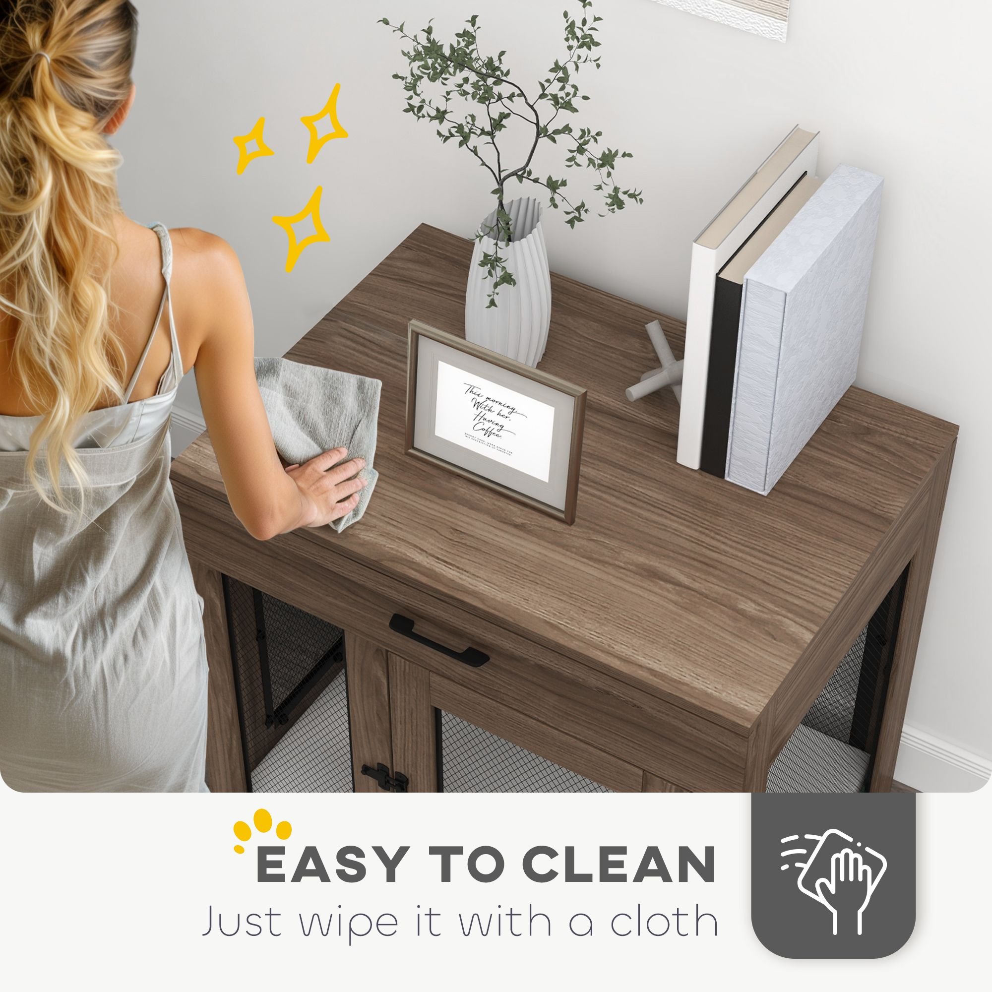 PawHut Dog Crate Furniture with Soft Water-Resistant Cushion, Dog Crate End Table with Drawer, Puppy Crate for Small Dogs Indoor with 2 Doors, Brown