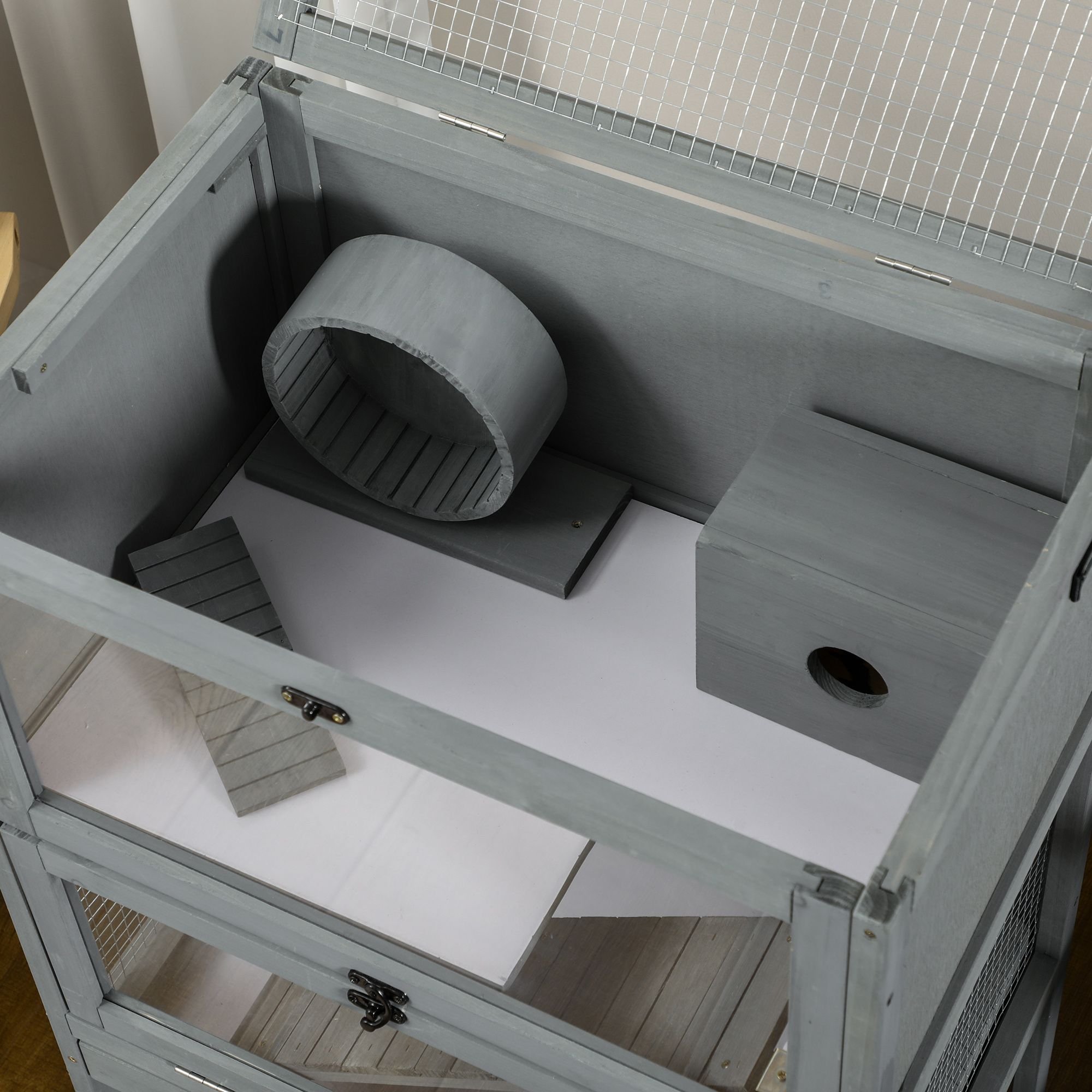 Easy Sight to Interior: Watch your little fur balls through the crystal clear windows of this big hamster house. Unlike wire coverage, the design offers open spaces without the need to see through metal bars. The panels are shatterproof, providing durability in case of harm. To pair with the glass, the mesh on top provides air circulation.