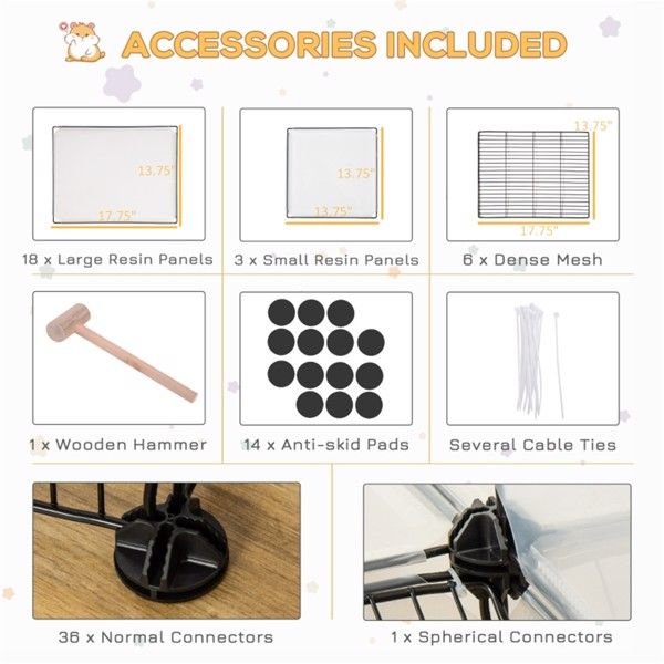• - Comes with 12 large resin panels, eight small resin panels, and eight dense net inverted doors