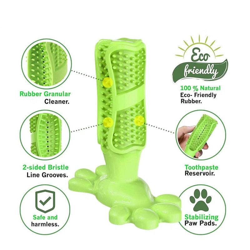 2.Besides, on the bottom of the dog brush stick, there is a paw base which can be hold on the ground steady and allow dogs easy holding so that can encourage the dog chewing.