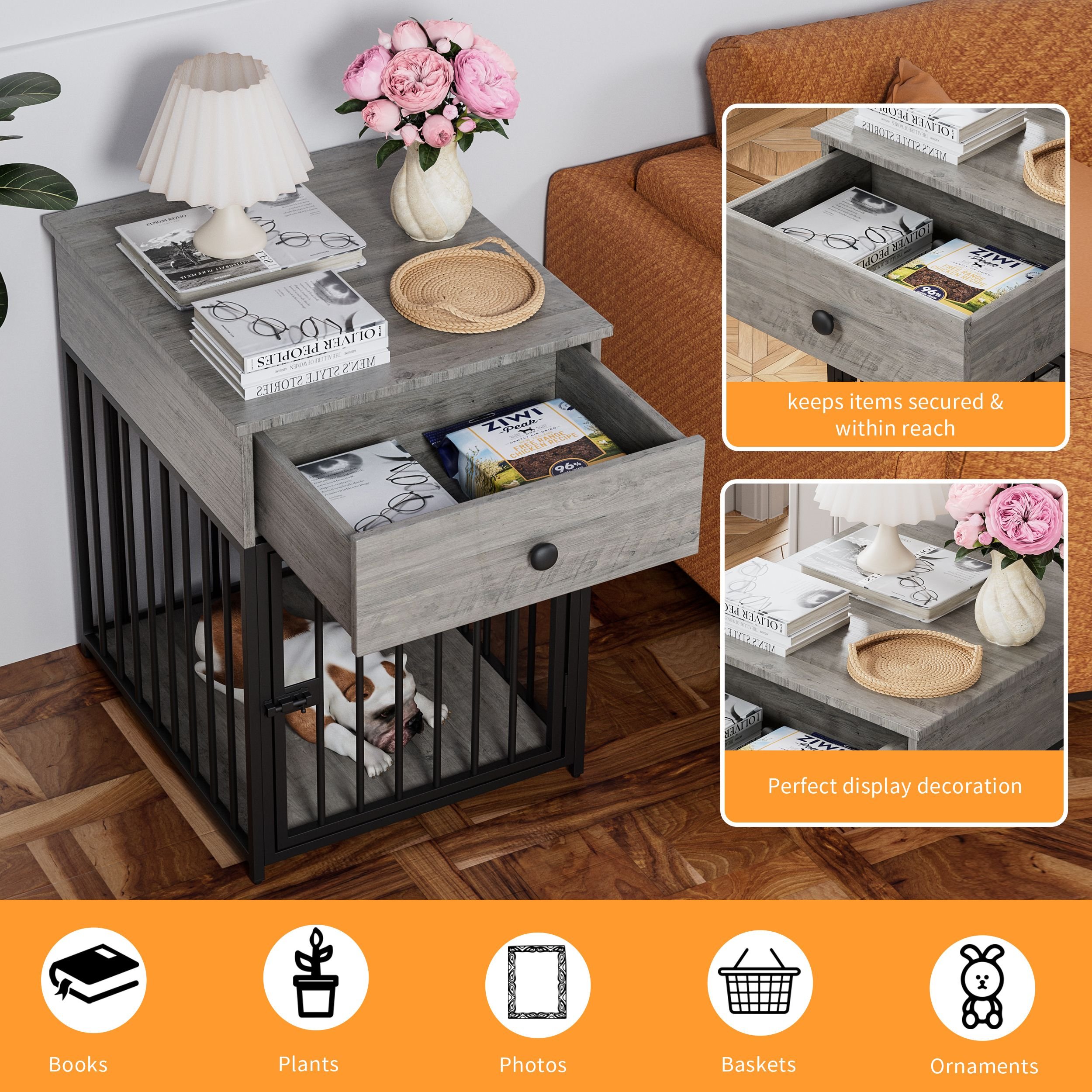 Meet What You Desire: With drawer storage function, dog food, dog shovel, dog toys, etc. are at a place. The dog house uses artistic retro-color particleboard panels to create industrial and modern appearance. Of course, You can also use it as a side table or bedside table.