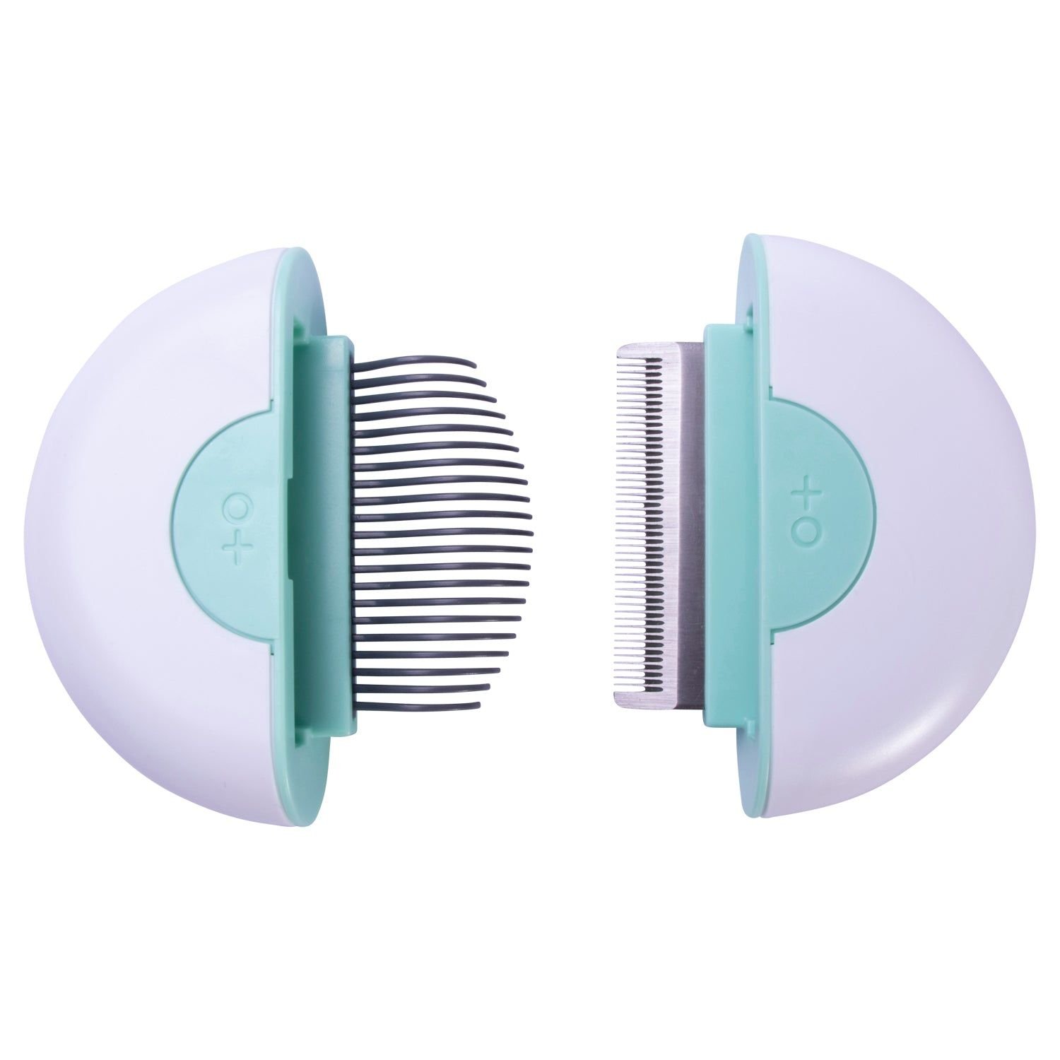 1.Features a Flexible Pet Comb and a Stainless Steel Deshedder that connect Open and Closed