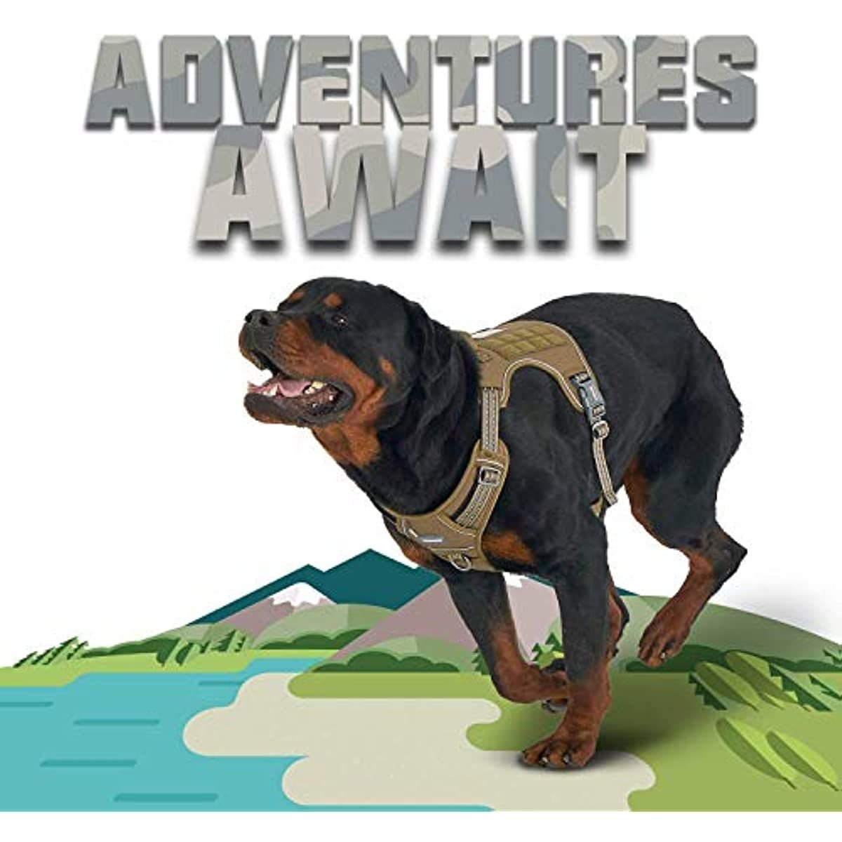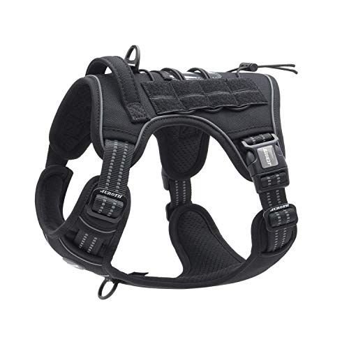 EASY ADJUSTMENT: Put on and take off this product with 2 quick-release buckles with no hassle. 4 fully adjustable straps (2 Shoulder and 2 Chest) allow a snug fit with maximum mobility. DURABLE MATERIAL: Our heavy duty vest made of 900D Nylon with sturdy stitching for extra durability; suitable for all fields use. Two rings can bear great pulling force ; ensuring your dog is safe during training; hunting; working; and any other occasions. Well padded in every pressure load point to protect your dog's skin; while the breathable air mesh keeps your dog comfortable. Molle System Use: Two 1" strips of Molle Sewn on both sides; allow your dog to carry gear in training. A wide range of use for personal service; law enforcement; hunting; or outdoor recreation. (Included ID Badge - BEST FRIEND ). It compatibles with Molle /PALs Pouch; so you can also hook dog bowl; water bottle and toys(No included). MAXIMUM CONTROL & SECURITY: Our safety harness features 2 metal leash attachment points to dog walks safely - One front clip for No-pull control or dog training; and the other one back clip for casual walking or jogging. SATISFACTION WARRANTY: Please reference to the sizing chart. Against any quality issues - Feel free to contact us if you have any questions; we are always here to help