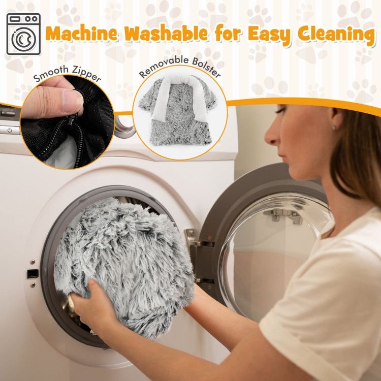 3.Removable and Washable Cover: The detachable zippered cover is easy to care for and we recommend using cold water to wash the cover, providing a clean and hygienic environment for your lovely dog. It is hand-washable and machine-washable. (Note: we recommend washing it by hand, for the hand may be deformed after a few washes in the washing machine.)