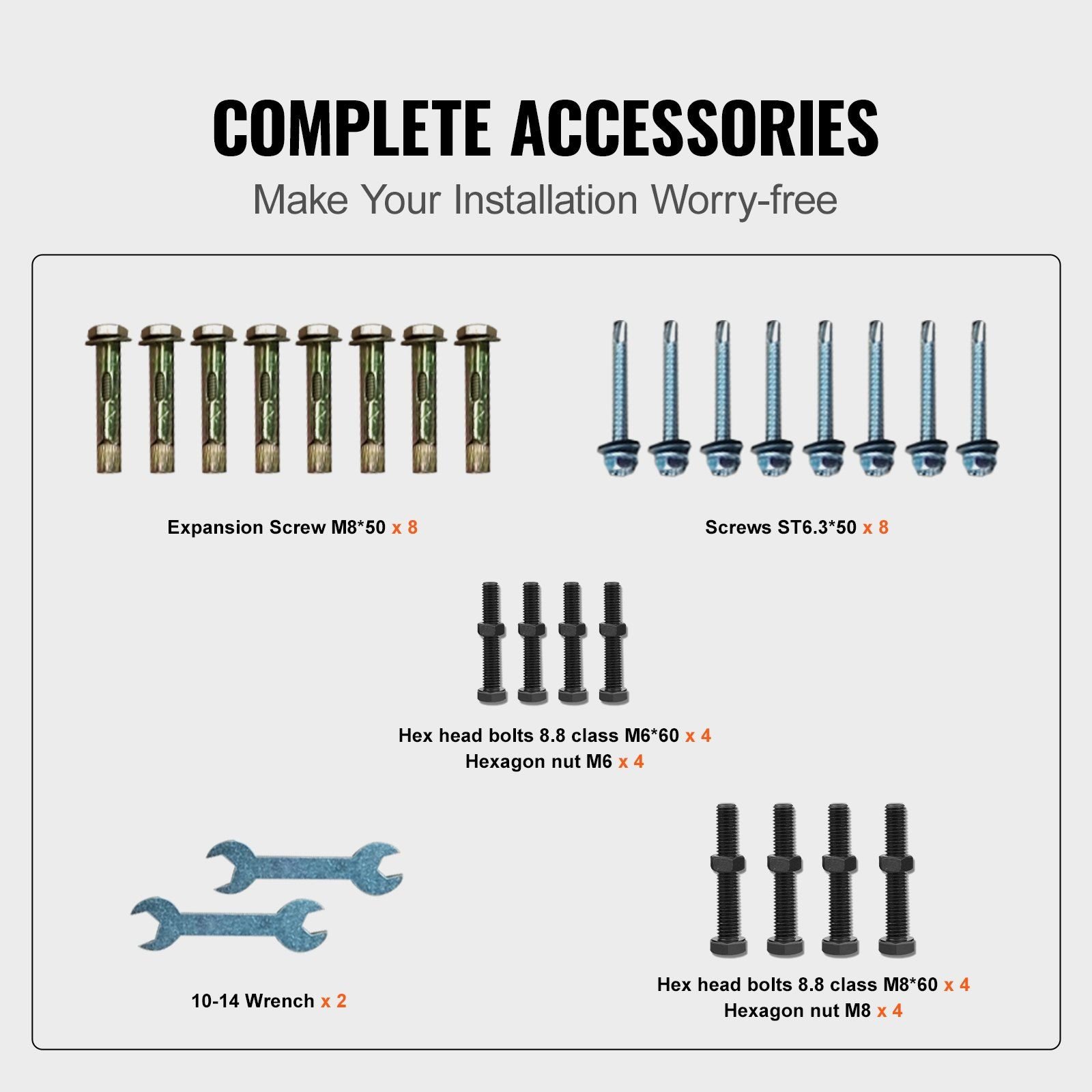 3.Effortless Installation: The front porch hand rail is easy to assemble with complete accessories, including 10 x M6 bolts, 4 x M8 bolts, 8 x self-tapping screws, 8 x expansion screws, 2 x wrenches, and 24 x gaskets. Just choose your desired location, mark it, drill holes on the mounting surface, set up screws, and finally place base trim over fasteners. It only takes a few minutes to finish the installation.