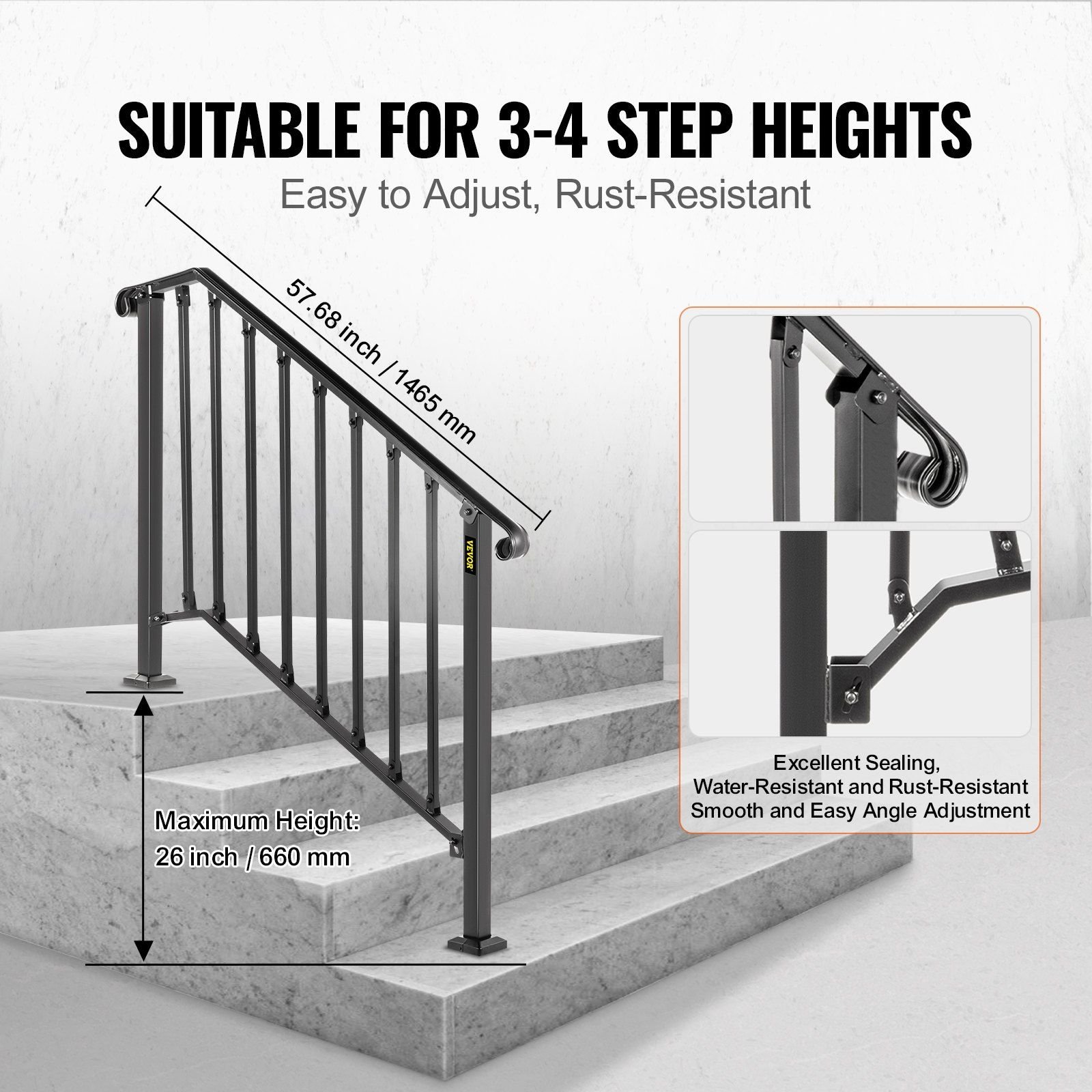 Home > VEVOR Handrails for Outdoor Steps, Fit 3 or 4 Steps Outdoor Stair Railing, Picket#3 Wrought Iron Handrail, Flexible Porch Railing