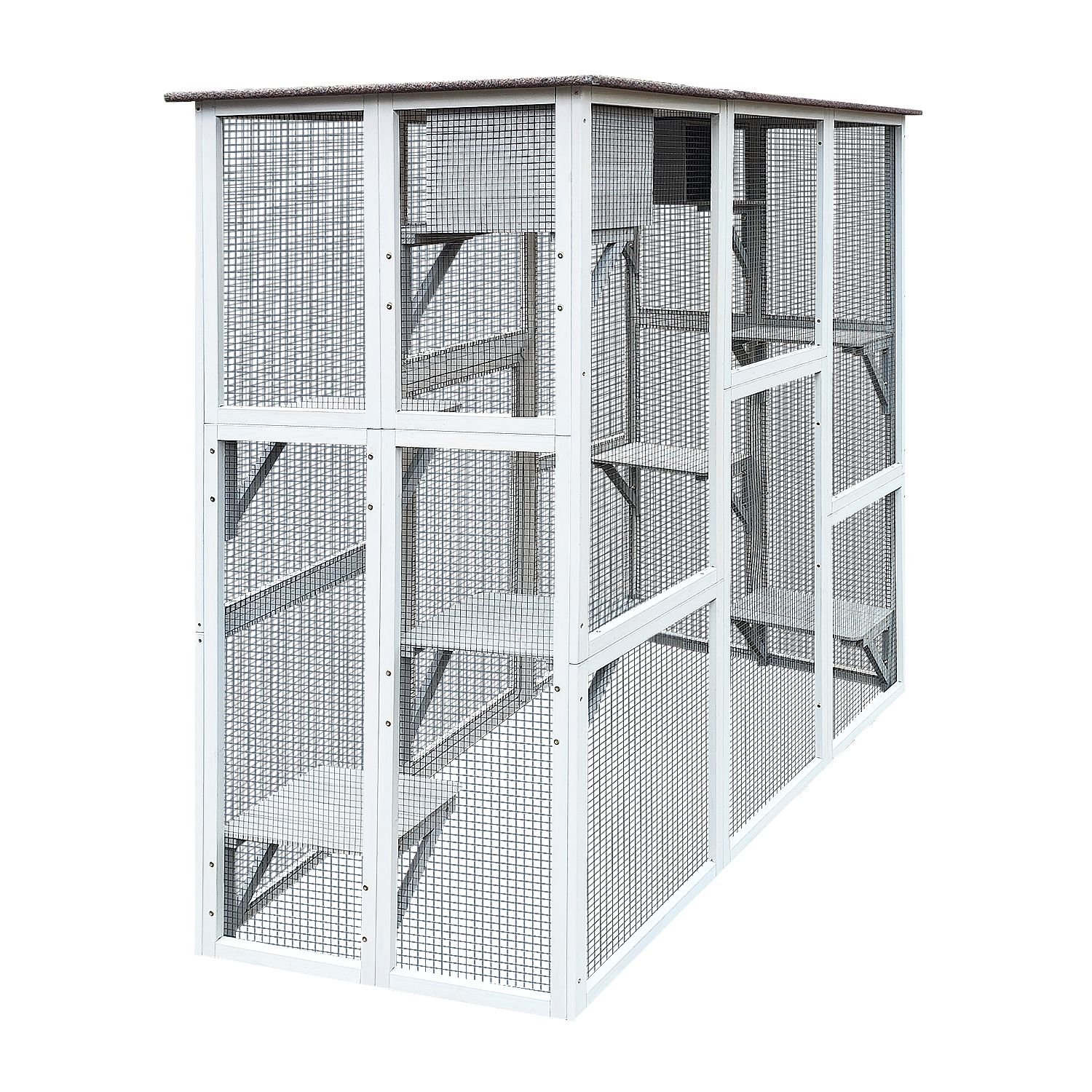 All-Weather Asphalt Roof: The cat cage comes with asphalt roof which takes advantage of sun protection and rainproof, perfectly withstanding to the outdoor elements.