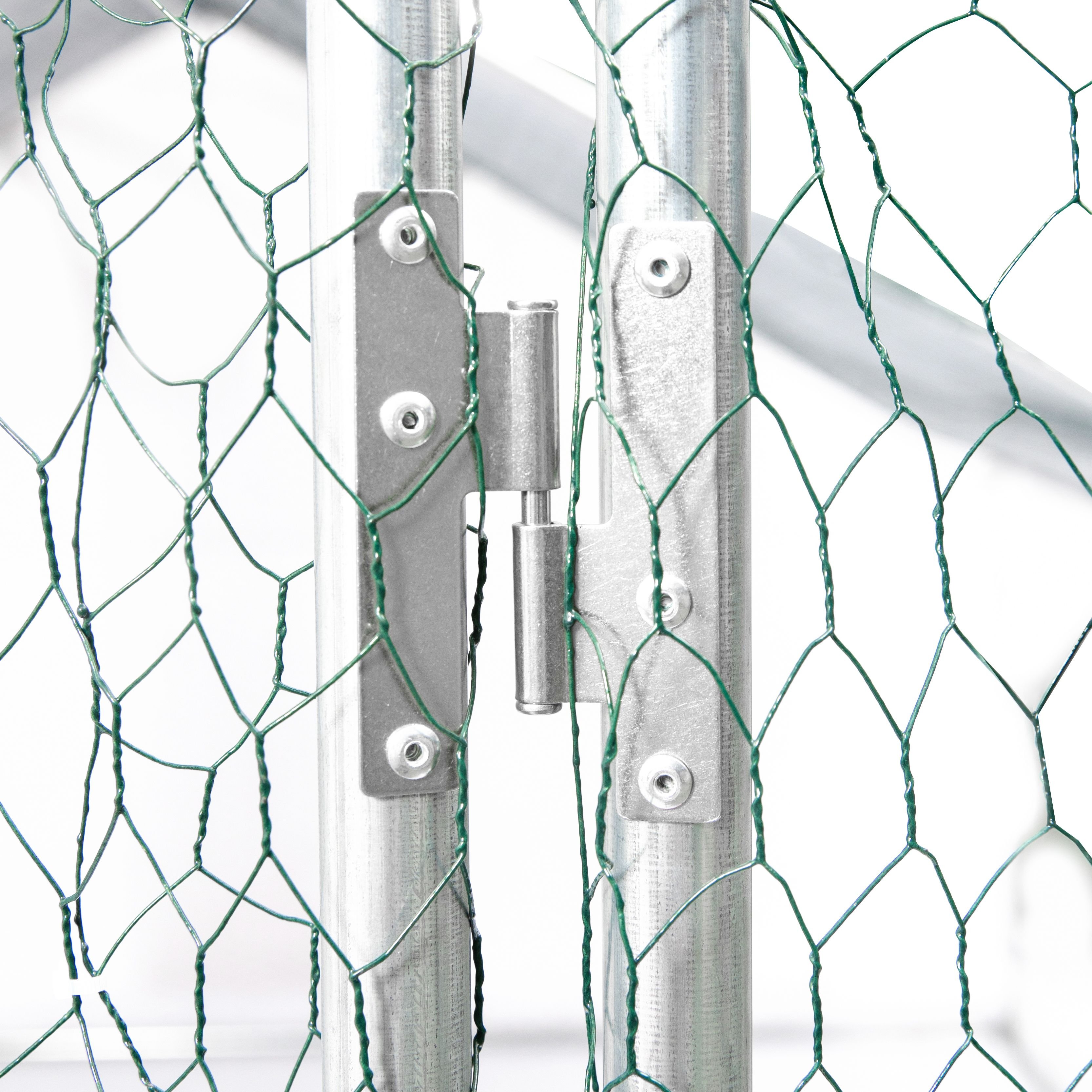This chicken run for yard with cover is designed with a firm gate, reinforced door, and lock function for easy access in and out. The narrowed gap to avoid chickens escaping and wild animals